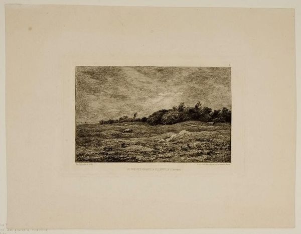 Curator: Turner's "Gloucester Cathedral" presents a vista shrouded in atmospheric perspective, a beacon of faith amidst a subdued landscape. Editor: Immediately, I'm struck by the sepia tones, the evident use of etching, and how the plate itself frames our view of Gloucester. It feels deliberately crafted. Curator: The cathedral acts as a silent witness, imbued with centuries of collective memory and spiritual yearning. Its presence here, softened by light and shadow, speaks to the enduring power of such symbols. Editor: Exactly, it's not just about the cathedral as architecture, but about the process. How Turner, through the labor of etching, transformed metal into a matrix for reproducing this potent image for wider consumption. Curator: Turner often used architecture to evoke history and emotion. Do you feel he's succeeding here? Editor: Yes, but I’m more drawn to the material implications – how this etching, a multiple, democratized access to his vision in a way painting could not. Curator: An interesting point, this artwork indeed operates on multiple levels. Editor: Indeed, both materially and symbolically, there is depth in the visual.