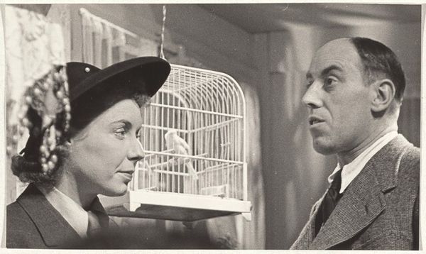 Editor: Here we have Robert Frank’s “Woman standing over cardplayers--Filming,” taken sometime between 1941 and 1942. The image, captured through photography, exudes a potent sense of drama and tension. What underlying stories do you think are being told here? Curator: That's a very insightful initial observation. To me, Frank’s work offers a poignant glimpse into the complexities of gender dynamics and social roles within that historical context. How is the woman positioned relative to the male card players, and what might that say about her power, or lack thereof, within this specific environment? Consider the power dynamics embedded in the traditional settings where men are often seen in control, and consider what challenges women might face while confronting them. Editor: I notice she's standing and seems to be talking "at" them, creating an opposition with the men. Is Frank suggesting that gender dictates behavior in a space like this, in the early 1940s? Curator: Precisely. This image opens a discussion about the pervasive expectations and limitations placed upon women in social environments dominated by men. Her assertive posture disrupts the conventional, passive female stereotype of the era, inviting us to think critically about issues related to feminism and patriarchy. We can question whose stories were seen as more important, and who got to decide those rules. Editor: So Frank is encouraging a conversation about equality? Curator: Indeed. And by extension, an understanding of the struggles individuals face when societal norms enforce a hierarchy based on gender and social roles. It encourages us to consider whether these dynamics still exist and to engage in conversations about diversity, justice, and breaking oppressive standards. Editor: I didn't initially recognize the activist perspective within this image. That offers an extremely relevant perspective. Thank you. Curator: My pleasure. Considering art as a mirror reflecting societal complexities enhances our engagement and fosters critical dialogue.