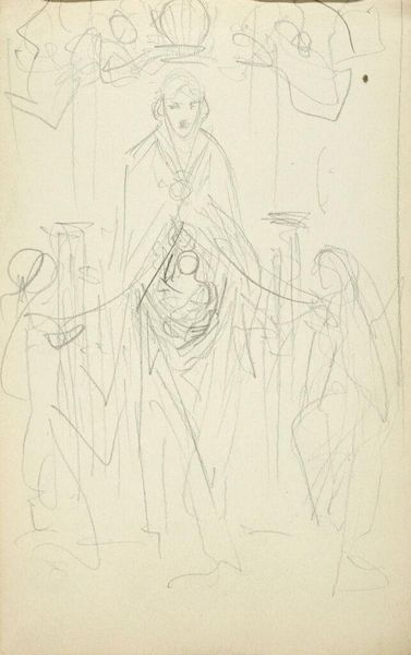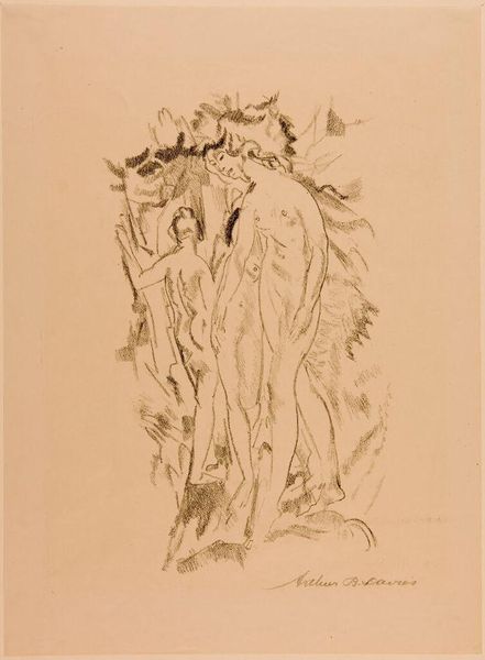 Editor: This drawing, "Sylvan Pass" by Arthur Bowen Davies, depicts figures in a landscape using delicate lines. It has a dreamlike quality. How do you interpret this work within its historical context? Curator: Davies's work often romanticized the female form within landscapes, reflecting the early 20th century's idealized view of women in nature. But how might we critically examine these portrayals through a feminist lens, considering issues of agency and representation? Editor: So, you're suggesting we look beyond the surface beauty and consider the power dynamics inherent in how women are depicted? Curator: Precisely. By interrogating these seemingly idyllic scenes, we can better understand the social and cultural values embedded within them, prompting crucial conversations about gender and representation. Editor: That's really insightful. I hadn't considered the social implications so deeply. Curator: Art offers so much to unpack when we consider the cultural frameworks at play.