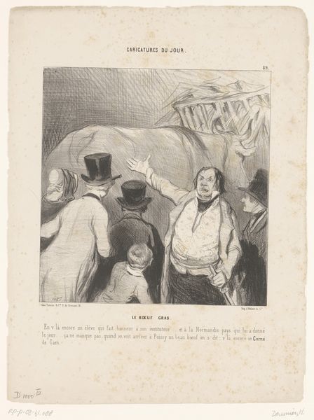 Honoré Daumier made this lithograph, with the lengthy title, 'A supervisor forced to close his eyes to the conduct of his students', using a greasy crayon on a stone matrix. This was a printmaking process suited to quick reproduction, perfectly aligned to the burgeoning print market of 19th-century Paris. Daumier was a master of this medium, and it allowed him to produce hundreds of images, mainly for the popular press. Here, Daumier used the lithographic crayon to full effect, creating sharp lines for the teacher's enraged expression, contrasting with the softer, scribbled rendering of the unruly students, and the blank sky above. Daumier used his material to expose the social tensions of his day, focusing on the absurdities of bourgeois life and the struggles of the working class. Here, his print is satirical and critical. The title suggests a commentary on the role of authority and control within the education system. Daumier’s choice of lithography – a mass-produced, accessible medium – underscored his commitment to bringing social critique to a wide audience. It is through such work that we can see how printmaking allowed artists to engage directly with the pressing issues of their time.