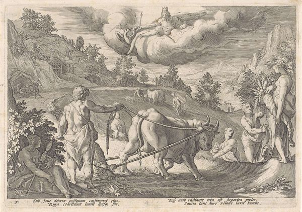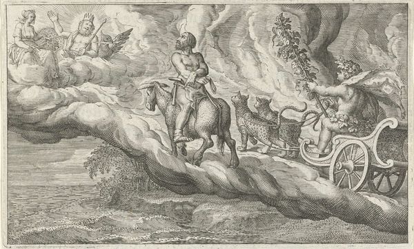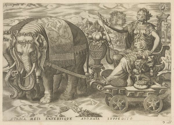 This print, titled "Europa," was made anonymously using the intaglio process, where lines are incised into a metal plate, inked, and then transferred to paper under high pressure. Consider how the engraver's skilled hand brings this allegory to life, defining textures and forms. Look closely, and you can see the meticulous labor involved in creating the elaborate details, from the horses pulling Europa's chariot to the figures in the background. The choice of printmaking as a medium is significant: it allowed for the relatively inexpensive reproduction of imagery, circulating ideas widely. Notice how the sharp, precise lines give the image clarity and a sense of authority. This aligns with the message of the print, which presents Europe as a dominant, civilizing force. The very act of creating and disseminating this image through printmaking is tied to broader social issues of power, knowledge, and the spread of European influence. By understanding the materials, the making, and the context, we can appreciate how this print challenges traditional distinctions between art, craft, and propaganda.