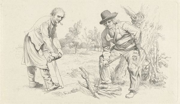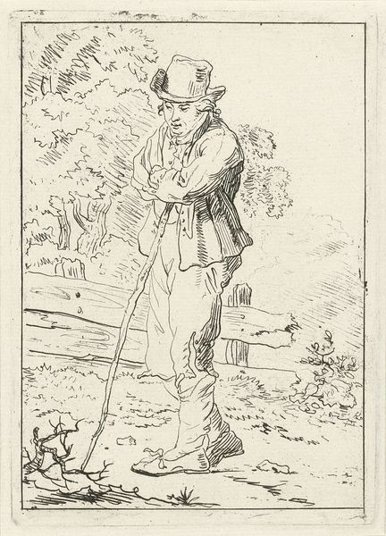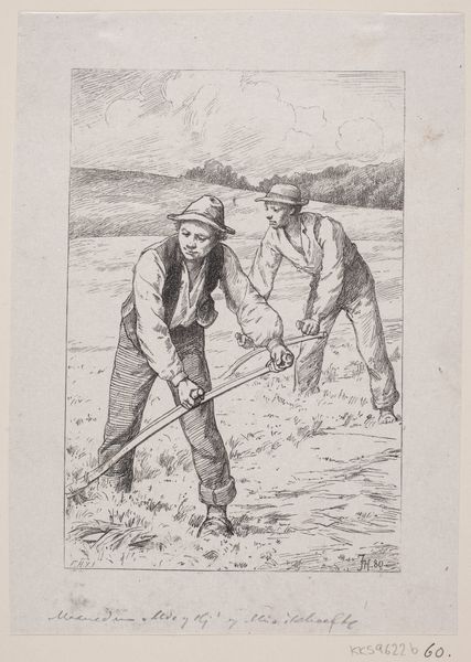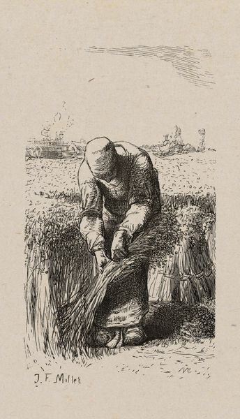 Jacques-Adrien Lavieille rendered "Mower" in ink on paper. The piece gives us a glimpse into the labor of rural life in 19th-century France. Lavieille, who was deeply influenced by Realism, often depicted the working class with an unvarnished eye. He lived during a time of significant social upheaval, marked by the rise of industrialization and urbanization, which led to increased class tensions and a renewed interest in the lives of those who toiled the land. In "Mower," we see a figure with their back turned, caught in the act of cutting hay. This vantage point invites us to consider the isolation and anonymity of agricultural labor. The work might reflect on the economic and social disparities of the time, highlighting the often-overlooked contributions of rural workers to society. Through its intimate portrayal, "Mower" evokes both a sense of respect and a poignant reminder of the human cost of labor.