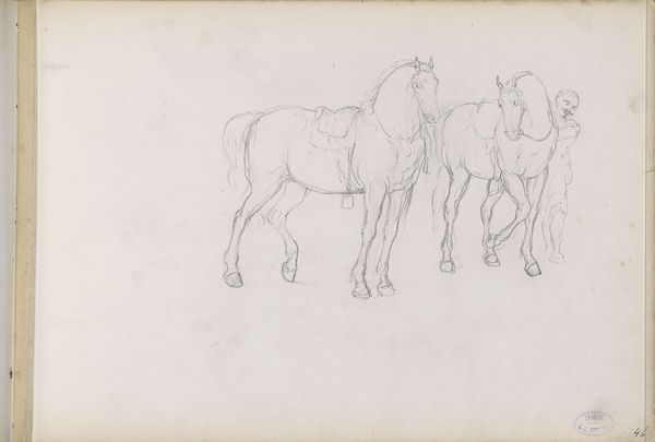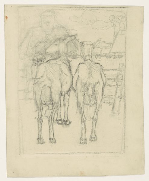 Henk Henriët made this drawing, *Paardenmarkt*, with pencil on paper. It’s all about gesture, a dance of lines that bring horses and people to life. The marks are quick, almost nervous, each one feeling like a thought caught in motion. Look at how Henriët captures the weight of the horses with just a few strokes, especially around their hindquarters. You can almost feel the mass of their bodies, the way they stand solid and still. And then there are the people, sketched in with such economy. The lines describing the man's coat and hat are so simple, yet they tell you everything you need to know. It reminds me a little of Daumier, that same interest in everyday life, the same ability to find beauty in the mundane. Henriët, like Daumier, understands that art isn't about perfection, it's about capturing a feeling, an impression, a fleeting moment in time. It's this embrace of the imperfect, the unfinished, that makes the work so alive.