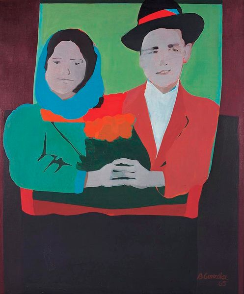 Curator: This photograph, titled "Najm (left) and Asmar (right)," comes from Studio Shehrazade in Saida, Lebanon, taken in the 1950s. It's part of Akram Zaatari's collection of works by Hashem el Madani. Editor: Oh, wow. It's like a silent movie still. There's something both tender and defiant in their gaze. The hats, the flowers… it feels like a story waiting to burst out. Curator: Zaatari's larger project examines Madani’s work within a framework of queer representation in mid-century Lebanon, considering the studio's role as a space where gender and social norms could be playfully subverted. The deliberate staging is critical here. Editor: Right? It’s almost dreamlike. They’re playing with expectations, maybe even pushing against them. You can feel this hum of quiet rebellion. I wonder what the rest of their lives were like. Curator: Exactly. The image prompts questions about visibility, identity, and the complexities of living authentically in a specific time and place. What does it mean for us to look at them today? Editor: It’s a reminder that even in the past, people found ways to express themselves, to love, to be seen, despite the restrictions. I keep thinking about that vase of flowers – this small act of beauty and resistance. Curator: It's a potent reminder of the layers embedded in seemingly simple photographs. Editor: Indeed. I feel like I've stumbled upon a precious, whispered secret.