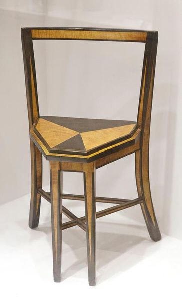 This chair, made of wood and reed by Cor Alons, asks us to consider the architecture of everyday objects. The linear framework feels almost like a drawing in space, reduced to its barest essentials. The wood grain peeks through, each knot and ripple telling a story of the material's origin and how it has been worked. I find myself particularly drawn to the back panel. It has this incredible, almost liquid quality. The dark stain pools and gathers in the grain, creating a depth that seems to contradict the flatness of the panel itself. It's a little like looking into a deep, dark pond – you can't quite see the bottom. It's both alluring and slightly unsettling. This reminds me of the work of Gerrit Rietveld, who like Alons also sought to create a new visual language for the modern world, one that embraced simplicity and functionality. What do you think? Does the chair provide a place to rest, or is it more of an idea about sitting?