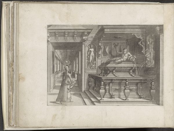 Editor: Here we have Salomon de Caus’s “Hortus Palatinus,” a drawing and engraving from 1620, held at the Met. It depicts, it seems, garden machinery. The meticulousness of the engraving gives it almost a technical drawing feel, and the detail devoted to the machinery in contrast with the pastoral background, especially, really grabs me. What’s your take on this engraving? Curator: It’s compelling when considered as a material object itself. The print, multiplied and disseminated, speaks to the circulation of ideas about engineering and spectacle in the 17th century. Look at the depicted waterworks; these weren't just aesthetic flourishes. They were labor-intensive, resource-dependent feats of engineering. Editor: Right, so it’s not just the final beautiful garden, but all the human input to create and maintain it? Curator: Precisely. The engraving highlights the process, the labor, even the materials required to realize this aristocratic fantasy. The wood, the metal, the water – all components brought together through human intervention. Consider the engraver’s own labor too! The precision, the time involved in translating the design. Editor: So, in looking at this print, it brings to light the, sometimes unseen or unacknowledged, materials that go into such ambitious garden designs? Curator: Exactly! It pushes us to think beyond the aesthetic surface and consider the underlying systems of production and consumption. In a sense, the print itself is a material manifestation of that very system. Editor: Wow, that is a fascinating approach. I had only considered the visual element initially. I didn’t even think about how it comments on resources like lumber and water, or even the labour put in by the engraver. Thanks for widening my perspective. Curator: My pleasure. Seeing art through its material reality allows us a fuller understanding of its cultural significance.