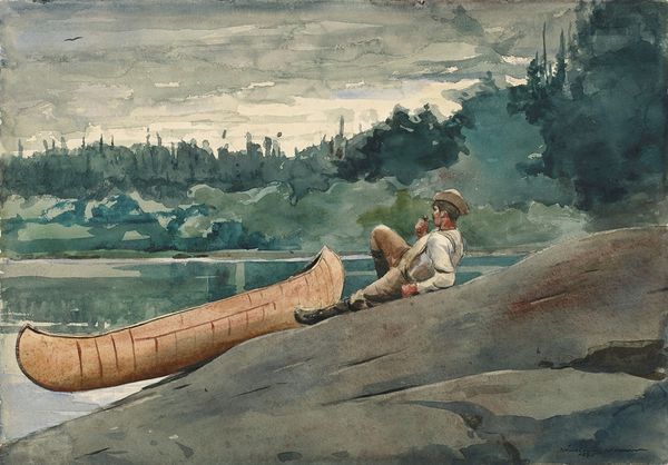 Winslow Homer's watercolor, Hudson River, Logging, shows us lumberjacks at work, an intimate glimpse into the backbreaking labor that fueled America’s industrial expansion. Look closely, and you'll see Homer's incredible skill with the watercolor medium. The fluid washes of blue and green beautifully capture the river's movement and the surrounding forest, while the rough texture of the paper adds a tactile quality that almost makes you feel the logs beneath your feet. Yet Homer doesn't shy away from the grit and danger of their profession. The lumberjacks, rendered with quick, confident strokes, stand precariously on the floating logs, tools in hand. This was dangerous work, demanding both physical strength and a deep understanding of the river's currents. Through Homer’s evocative brushwork, we feel the weight of the logs, the chill of the water, and the constant risk these men faced. It challenges any romantic notions we might have of nature, revealing it as a site of intense labor and resource extraction.