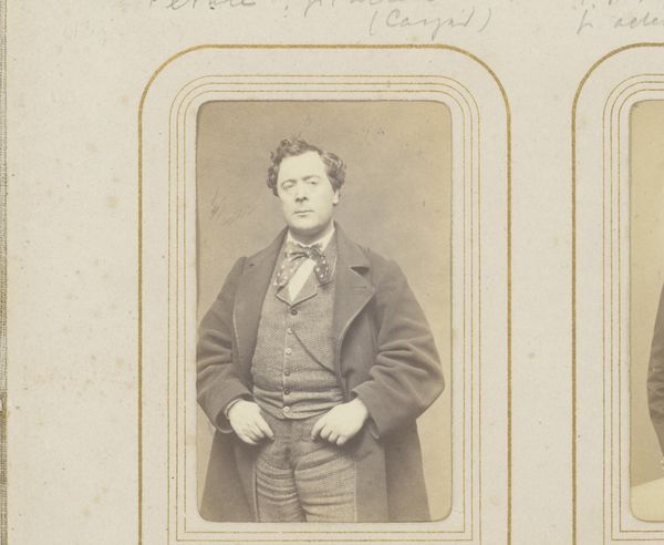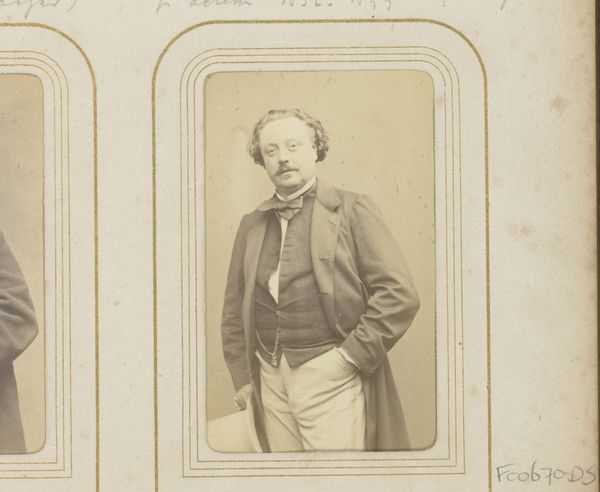 Curator: The subject seems lost in thought, his gaze directed away, suggesting perhaps the weight or the fleeting nature of fame. Editor: Let’s delve into this photograph. Entitled "Portrait of Ernesto Nicolini," created sometime between 1861 and 1872 by Carjat et Cie, it is a gelatin silver print. Nicolini was, of course, a celebrated opera singer. Curator: Absolutely, and thinking about opera, especially within a 19th-century context, situates Nicolini within complex systems of power and representation. He embodies a specific masculinity, amplified and stylized for the stage and, now, preserved here in a way that is at once intimate and incredibly constructed. I am immediately interested in how the artistic conventions that define performance culture operate here. Editor: What’s striking is the lack of theatricality, the muted quality. Considering the medium, the access to photographic studios that famous performing artists were provided certainly played a role in shaping this "authentic" depiction for the broader public, especially with the growth of celebrity culture at this time. It invites interesting questions of visibility and fame. Curator: I completely agree. How does he understand his role as a subject, in collaboration or perhaps in negotiation with Carjat et Cie? And what does it say about shifting modes of portraiture and identity formation during this period? Was it collaborative or controlled? How much did he see this image contributing to his narrative? Editor: Given that Carjat et Cie produced photographic portraits of many other notable figures, the gallery system clearly played a part in controlling this celebrity representation. As such, how do we see portraits such as this playing into the institutional power dynamics that helped the elites rise into greater fame and notability, especially via a cultural hub like the Rijksmuseum today? Curator: Yes, exactly! The placement within the museum adds yet another layer of context. Thinking critically about the politics of display and the ways in which museums solidify certain historical narratives and overlook others remains critical to an understanding of how fame plays into a complex understanding of legacy. Editor: I hadn't thought of it that way. Viewing this portrait provides insights into photography’s public role in shaping reputations. Thanks for helping me look at it differently. Curator: Thanks to you. The piece underscores photography’s unique ability to blend reality and performance, reminding us that what we see is always a carefully crafted representation.