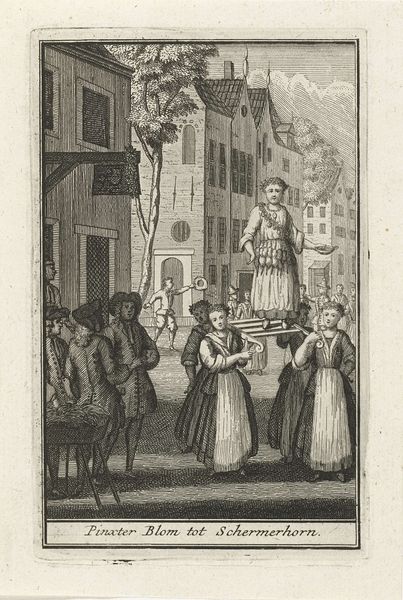 Editor: This etching, "The Harvest" by Bartolomeo Pinelli, feels so alive! The figures picking grapes look like they're in mid-conversation, with this donkey quietly eating. How do you interpret this scene? Curator: Pinelli's "Harvest" sings to me of the Roman countryside. Can you almost smell the ripe grapes and hear the laughter? Notice how he uses simple lines to create such depth, drawing our eye to the distant buildings. Editor: It's like a snapshot in time. Curator: Exactly! And Pinelli, ever the storyteller, reminds us of the simple joys, the connection to the land. Do you find yourself transported? Editor: Definitely. It makes me want to join the harvest! Curator: Yes, me too. It’s a testament to Pinelli’s skill, isn't it, to evoke such a feeling with just ink and paper?