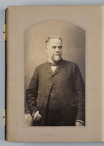 Curator: This is a portrait of Andrew Carnegie, the industrialist and philanthropist, captured by Mathew Brady, a prominent photographer of the 19th century. Editor: It's a striking image; the light and shadow play across his face gives him a very solid, almost sculpted presence. Curator: Brady's photographic practice was deeply embedded in the social fabric of his time. Carnegie, a figure of immense power, commissioned this portrait, reflecting the era's emphasis on projecting influence and status. His labor practices were under constant scrutiny. Editor: Absolutely, and you can see the details in the fabric of his suit, the ornate carving of the chair, the photographic print itself, which indicates a certain amount of wealth and industry behind its making. It's a material testament to Carnegie's world. Curator: Indeed, a tangible representation of the complex narrative surrounding industrial wealth, labor, and representation in that period. The politics of this portrait are fascinating. Editor: It certainly leaves you pondering the means and materials that built such an image—and the Carnegie empire itself.