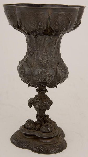 Curator: Immediately, I'm struck by the intricate metalwork of this goblet—it projects power and history. Editor: Indeed, the "Facsimile of Goblet with the Jessie Tree," likely from the Nuremberg School around 1540-1550, showcases the maker's skill. The Jessie Tree imagery is really interesting, depicting the lineage of Christ. Curator: Right, and the tree motif itself is powerful. Trees have always represented life, growth, and connection to ancestors, which resonates with the theological concept of lineage. Editor: But I wonder, who was this goblet for? Was it a symbol of wealth, religious devotion, or both? Its presence would have signaled specific social and political affiliations. Curator: Without question. These objects were designed to communicate status and beliefs. It's an object meant to signal power, wealth, and religious allegiance. Editor: The layers of meaning encoded in the goblet reflect the complexities of the period. So much to think about. Curator: Absolutely, and for me it evokes the weight of tradition and the timelessness of faith.