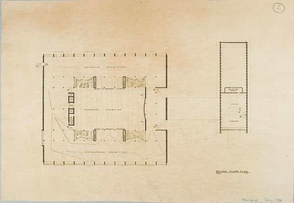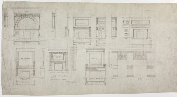 Curator: At first glance, it appears almost ghostly—a spectral presence rendered in graphite and ink. Editor: Indeed. What we have here is a drawing titled "Brunswick Balke Collender Company Factory Building, Chicago, Illinois, Multiple Views." Attributed to Adler & Sullivan, Architects, it likely dates sometime between 1891 and 1899. Curator: Ghostly, yet precise. The fine lines describe more than a structure; they map the aspirations and ideals of a city burgeoning with industry and innovation. Those repeated window shapes, like eyes, offer an architectural language promising transparency and mass production. Editor: The grid structure you are referring to emphasizes the logic of industrial design. But also consider the very materiality. The ink and graphite are carefully layered to express an almost Platonic essence of building: planes, voids, supports—it’s as if we're seeing the structure's ideal form laid bare. Note the linear style. Curator: I find something undeniably potent in that reductive quality. This wasn't merely a blueprint, but a statement about industry's place in society—architecture embodying the values of the age: efficiency, order, even a kind of stark beauty. Editor: Values reflected as well through the repetition of forms throughout. Think of the window panes themselves, and what they represented for a factory in Chicago at the close of the 19th century. Light. And productivity made manifest. Curator: Looking at it again, the lines also seem to speak of division and standardization within labor itself. But what stands out to me are not these intellectual considerations but, despite everything, a clear demonstration of a creative artistic sensibility! Editor: Well said. Perhaps what strikes me most is this delicate interplay between line and volume—between abstraction and something concrete in its manifestation. Curator: A dialogue in lines, about work and living—I find that remarkable. Editor: Precisely. A stark look into a fascinating age in the American zeitgeist of architectural aesthetics and industrial output.