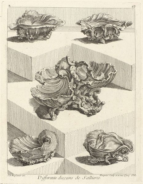 Joseph Friedrich Leopold made this print of thirteen jewelry designs with etching. The image presents a range of ornamental concepts, reflecting the baroque style that dominated European art during Leopold’s lifetime. These elaborate, swirling patterns speak to the fashion for opulence and display within courtly society of the late 17th and early 18th centuries. The designs suggest a world obsessed with status and visual spectacle. The intended wearers of such jewelry belonged to a social elite, for whom the adornment of the body was an important means of communication. To understand Leopold's work more fully, we might consult the fashion plates and portraiture from this era. These provide a context for the consumption and circulation of jewelry in baroque society. We might also explore archival records of the goldsmiths' guilds, which governed the production and distribution of such luxury items.