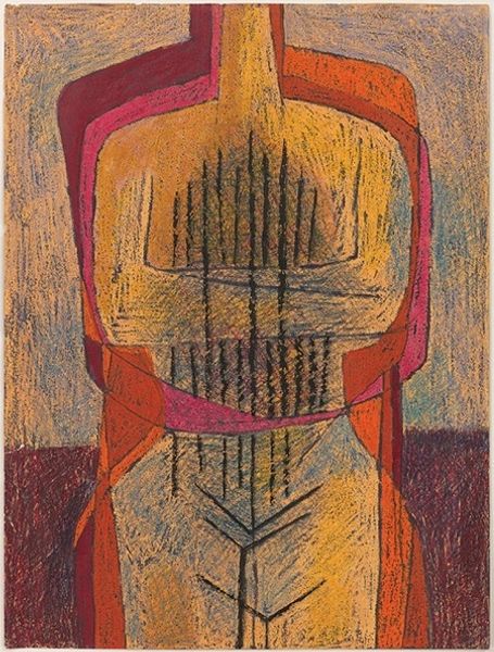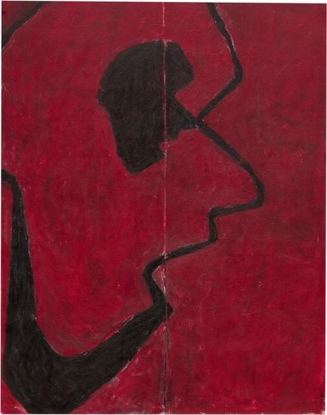 This untitled painting by Marin Gherasim presents a striking composition dominated by bold red hues against a muted green backdrop. The brushwork is expressive, with visible strokes that build up the form. The overall texture feels raw and immediate. The interplay between the shapes generates visual tension and challenges our perception. The red form on the left resembles an organic shape, perhaps a wing or a stylized figure, but any figurative reading is destabilized by the composition. It appears constrained against the green backdrop, which pushes it against geometric shapes, and introduces a sense of unease, challenging fixed meanings. The red suggests a space of intensity, emotion, or even confinement. Ultimately, the work remains open-ended, inviting us to reconsider how forms interact and how color shapes our emotional landscape. It exists not as a static object but as a dynamic site of potential interpretations.