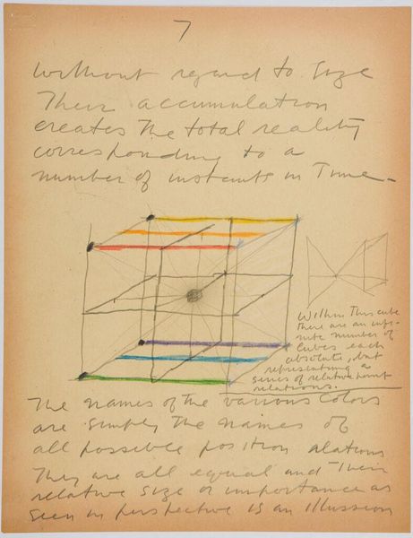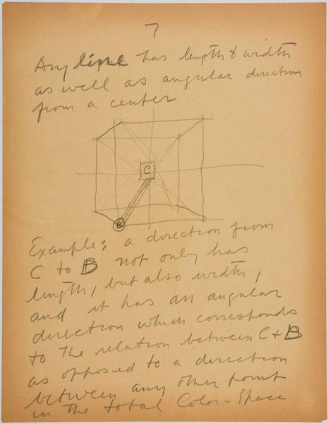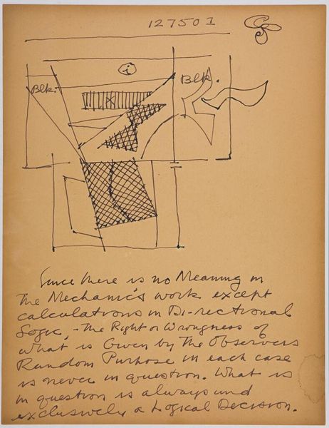 Editor: So, this is Stuart Davis's "Art Theory Diagram," and it looks like it's just a sketch on paper. It feels almost like a key, a legend to understanding something bigger. What do you see in this piece beyond just the simple lines and boxes? Curator: I see Davis grappling with the very language of modernism. How can we represent the world, and how do our choices reflect power, perspective, and the social structures that frame our vision? He's not just exploring form; he's dissecting the very act of seeing, and isn't seeing always implicated in social and political forces? Editor: That's a really interesting way to put it. So the "diagram" isn't just about art, but also about how we see the world and each other? Curator: Exactly. And who gets to define that vision? Davis challenges us to question the established order, to see beyond the surface and understand the deeper meanings embedded in every line and form. Editor: I never would have thought of it that way. It definitely gives me a new appreciation for what seems like a simple sketch. Curator: It's about challenging the canon. It's a starting point for deeper investigation.