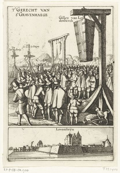 This print, entitled ‘The Strappado’, was made by Gerrit Lucasz van Schagen sometime before 1635, using etching on paper. Etching is a printmaking process that relies on corrosive acid to create lines in a metal plate. This plate then transfers the design onto paper. The process itself requires a mastery of craft, but its reproductive nature also suggests early industrialization. Prints like this were often made in multiples, and the scene depicted here, the public torture of soldiers, tells us about the social and political climate of the time. We see the way hierarchies are enforced, the violence wielded by the powerful, and the labor of those tasked with carrying out these punishments. The fine lines of the etching emphasize the horror of the event, a form of state-sponsored violence. This image is a powerful reminder of how materials and making can intersect with social issues, blurring boundaries between art, craft, and political commentary.