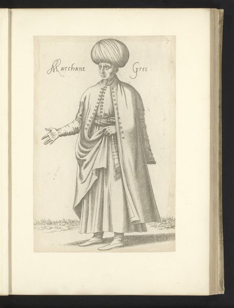 Editor: So, here we have Léon Davent's "Turkse vrouw," made sometime between 1555 and 1568. It's an engraving, so a print, which I find fascinating. What strikes me is how detailed and almost…curious it feels. I mean, she is wearing shoes that are like architectural pedestals. What do you make of it? Curator: You know, sometimes I feel like these prints are secret little windows into another time. This "Turkish Woman," isn't just a portrait. It's a statement about how cultures saw each other, the little details they focused on—look at those shoes! Davent wants us to see the “exotic” and he does it so expertly. Don't you think? Editor: Definitely, but it's also interesting what he *doesn't* show. We don’t see a specific context. She's just...there. So, what do you make of that stylistic choice, to have the background virtually empty? Curator: I find that intriguing, too. It’s as though he wants us to fill in the blanks. He gives us the "what," her dress, the stance, but leaves the "where" and "why" to our imagination. He’s selling the image, more than the reality of the woman herself. How do you think this affects our perception of her? Editor: It makes her feel almost… like a costume, or a character in a play, rather than a real person. Curator: Precisely! He is presenting her. Maybe these artists had no way of knowing just how well preserved their vision of people would endure centuries later, through their craft. It gives one pause, no? Editor: Totally. It's amazing how much you can unpack from just one image. I'll definitely look at prints differently now. Curator: Absolutely, my friend. Every little line tells a story if we are keen enough to observe!