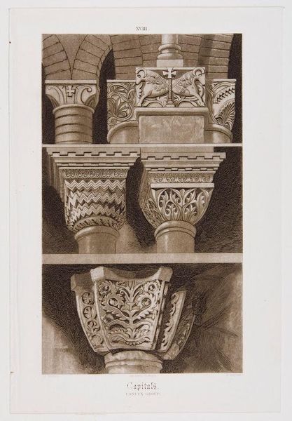 Joseph-Philibert Girault de Prangey made this print, titled "13. Details, Mosque of Ibn Tulun," sometime in the first half of the 19th century. Girault de Prangey was part of a wave of 19th century European artists and scholars who traveled to the Middle East, North Africa, and other parts of the world, often with the backing of colonial powers. These journeys were fueled by a mix of scientific curiosity, romanticism, and the desire to document and classify cultures and monuments. Here, he depicts architectural details from the Mosque of Ibn Tulun in Cairo, Egypt. While his careful renderings of the mosque’s intricate stonework and geometric patterns are visually compelling, his work also speaks to the power dynamics inherent in the act of representation. As a European artist documenting Islamic architecture, Girault de Prangey’s gaze was inevitably shaped by his own cultural background and the colonial context of the time. His work can be appreciated for its aesthetic qualities and historical value, but it's also important to consider the complex relationship between the artist, his subject, and the broader social forces at play.