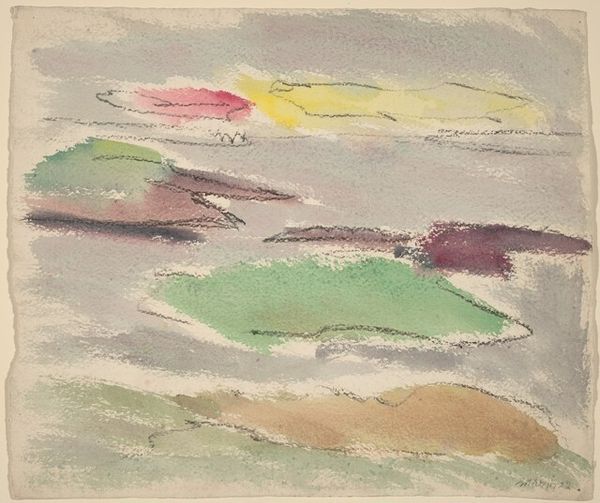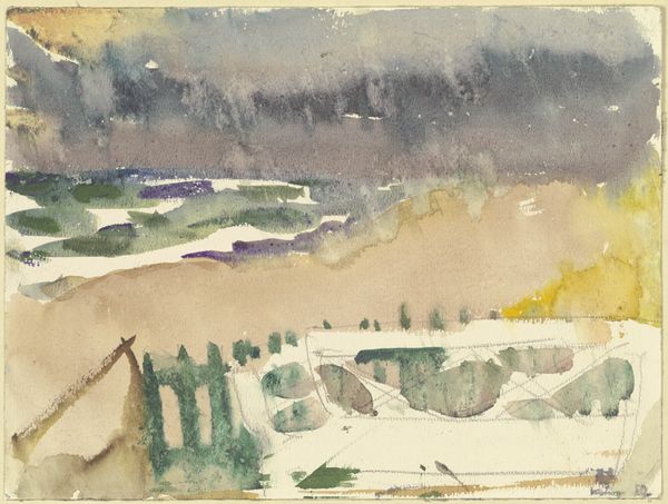 Arno König made "Surge during rain" with watercolor on paper. It's like he captured a fleeting moment, a quick impression. The washes of color blend and bleed, giving a sense of immediacy, like he's right there, painting in the rain. The colors are muted, mostly grays and blues, with hints of green and purple. Look how he layers the washes, creating depth and texture. The paint is thin and transparent, allowing the paper to peek through in places. It's kind of raw, you can see the process, the hand of the artist at work. Notice the dark horizontal line in the middle, is it land, or sea? It reminds me a little bit of Emil Nolde's seascapes, that same sense of drama and raw emotion. But König's work has a more delicate touch, a quiet intensity. Art is always in conversation with itself, echoing and responding to the past, while also forging its own path. It’s never just one thing, it’s always a question, an invitation to see the world in a new way.