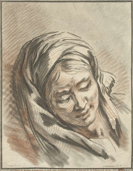 Moses ter Borch created this small drawing of a woman’s head, with chalk on grey paper, in the mid-17th century. Ter Borch, who died at just 22 years old, came from a family of artists in the Netherlands during the Dutch Golden Age. The woman's downcast gaze and the simple headscarf might suggest humility, or perhaps a moment of introspection. In Dutch society at the time, dress, particularly for women, was heavily coded, indicating social status and religious affiliation. A headscarf like this could signify modesty, piety, or simply be a practical garment worn by working-class women. Ter Borch’s choice to focus on the woman's face, and particularly her eyes, invites us to consider her inner life. What is she thinking or feeling? Is she resigned, content, or longing for something more? The drawing offers no easy answers, but it does open a space for empathy and reflection. It reminds us that within the broader sweep of history, individual lives, experiences, and emotions persist.