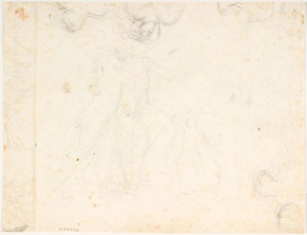 Editor: This is "Figure studies", a drawing in pencil and pen by Cesare Nebbia, created sometime between 1536 and 1614. It’s fascinating to see these figures emerging so lightly on the page; they seem to float. What stands out to you? Curator: It whispers, doesn't it? Like catching echoes from the Renaissance workshops. You know, Cesare Nebbia was no small fish – he decorated Vatican’s Scala Santa! Seeing these preparatory sketches is like glimpsing the underpinnings of grandeur. Do you see the dynamic poses, the striving for anatomical perfection? It's raw energy, bottled. Editor: Definitely raw. The dynamism is there, but some of the proportions seem…off? Is that common for sketches of this period? Curator: Precisely! Think of these as visual explorations, not polished statements. Nebbia is chasing the ideal form, wrestling with perspective. The slightly awkward limb here, a too-muscular torso there… it's all part of the artistic inquiry. And the way he uses line—light pencil strokes to find the form, then bolder pen lines to define it—it's like watching him think! Does that resonate with you at all, as a student of art? Editor: Absolutely, it's like seeing the thought process laid bare. It makes it feel more approachable, almost collaborative, even across centuries. Curator: A collaboration indeed! With genius, perhaps. It reminds us that even masters begin with a sketch, a hesitant line, a question mark on paper. Editor: This has totally shifted my perspective on Renaissance drawings. I was expecting pristine perfection, but this feels so much more…human. Curator: Exactly! Imperfectly, beautifully human. And that's the magic.
