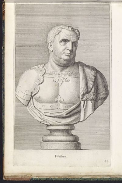 Curator: Here we have Hubert Quellinus' engraving, "Bust of Agrippina the Elder," created sometime between 1646 and 1670. What strikes you initially? Editor: The sternness in her gaze is arresting. There's a sense of resolute determination conveyed through the subtle lines around her mouth. And the way her garment drapes...it’s simple but elegant. Curator: Indeed. Agrippina lived a complex life, navigating treacherous political waters as a member of the Julio-Claudian dynasty. Considering Quellinus was working over fifteen hundred years later, it's compelling to consider the stories that have been written about Agrippina. What elements in this portraiture seem designed to speak to us even today? Editor: The drapery immediately conjures the classical world, yet is rendered in the baroque style then emerging – soft shadows playing over folds of the toga. That almost becomes an allegory of Rome’s enduring power and legacy through shifting cultural moments. It is all about visual legacy. Curator: Precisely! One can read her expression, for example, through a feminist lens. As the mother of Emperor Caligula, her ambition and influence in a male-dominated world should not be denied. And given Roman attitudes about gender, she may be viewed critically and sympathetically. Editor: Definitely, and that is emphasized in the symbolism of the bare breast. It hearkens back to depictions of the maternal goddess Roma herself, evoking power derived from procreation, destiny and, ultimately, from Agrippina's line. Curator: She really existed within layers of socio-political conflict, then, so is that visible through a modern appreciation of an older image? Do you see tensions mirrored in the portrait itself? Editor: Yes, that tension gives the work its lasting power. The face is certainly Agrippina but it evokes Roman ideals, and the image reflects Baroque ideals, which add nuance to its interpretation and emotional impact. The piece is more than just a rendering of Agrippina, then: it shows a Roman legacy, gender roles, a historical style and more. Curator: Ultimately, the piece offers us more than just the story of Agrippina the Elder: it's about how historical images, memory, and politics blend, allowing us a way to understand Agrippina on new terms. Editor: A visual puzzle then, inviting the viewer to decode the past through symbols.