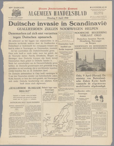 Curator: Here we have "Algemeen Handelsblad," possibly from 1939. It’s a collage incorporating print, photography, and typography. A powerful combination of materials. Editor: Yes, a Dutch newspaper front page! The arrangement of text and images feels stark and urgent. What do you see in this piece? Curator: I'm immediately drawn to the date, September 2, 1939. This newspaper is a relic, embodying cultural memory and continuity, charged with emotional and historical weight. Consider the symbolism of a newspaper itself – an immediate, yet fleeting, reflection of its time, now fossilized. Do you see the main headlines? Editor: "England and France Issue Ultimatum." It feels very direct, almost a warning. Curator: Precisely! Think about the typography – the bold, stark lettering shouting a message of impending conflict. The visual language is deliberately aggressive. And "Ultimatum" evokes images of the past treaties and declarations of war that relied on the power of written documents to hold weight and ensure lasting peace. This composition serves as a powerful iconographical representation of the moment Europe teetered on the edge of war. A moment frozen in time that is doomed to reemerge and repeat. What do you make of the other text blocks? Editor: The references to Chamberlain and mobilization – these are snippets offering more clues as to the events unfolding, the cultural anxieties present. The photograph seems absent, doesn’t it? Almost intentionally avoided. Curator: Perhaps, its absence is the point. The word is potent, and the need to depict or further symbolize is dismissed to give credence to the ultimate message of impending doom. A clever interpretation. The symbology really adds depth here. Editor: I hadn't thought of it that way. It's amazing how much this single page communicates. Curator: Indeed. Cultural memory is deeply embedded in visual symbols, isn't it? Each element resonates, building to an unsettling whole.