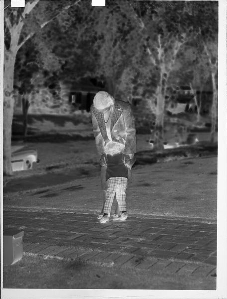 Editor: This gelatin silver print, "Untitled (woman holding baby over shoulder)" by Lucian and Mary Brown, has such a striking, almost otherworldly quality. What do you see in this piece? Curator: I am drawn to the labor inherent in its creation. The photographic process itself, the darkroom manipulations, the chemical reactions—it's a material record of production, transforming a domestic scene into something…other. Editor: Other how? Curator: Consider the accessibility of photography versus painting at the time. Who had access to these tools and materials? What stories were deemed worthy of this kind of preservation, and what does it tell us about consumption, memory, and the artists? Editor: That gives me a new way to consider photography, thank you! Curator: My pleasure.