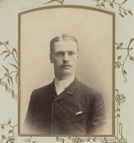 This is a small portrait of an unknown man made by Machiel Hendricus Laddé, a Dutch photographer from Amsterdam. Laddé operated in a time of shifting social structures and growing awareness of individuality. Here, the sitter is presented in a way that both reflects and gently challenges societal norms. His attire speaks to a certain class and status, but there's also an attempt to capture something more intimate. The composition and the subject's gaze invite a kind of personal connection, as if he's sharing a private moment. The photograph also raises questions about visibility and representation. Who gets to be seen, and how are they portrayed? What stories remain untold? The emotional resonance of this image lies in its ambiguity, in the space between what is revealed and what remains hidden. In the end, this portrait prompts us to consider our own roles in the act of seeing and being seen.