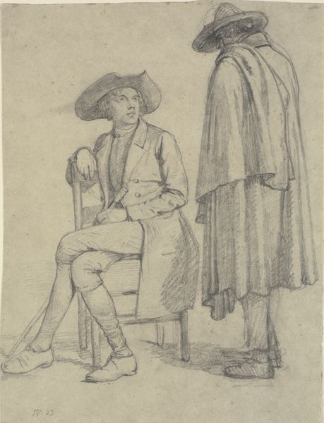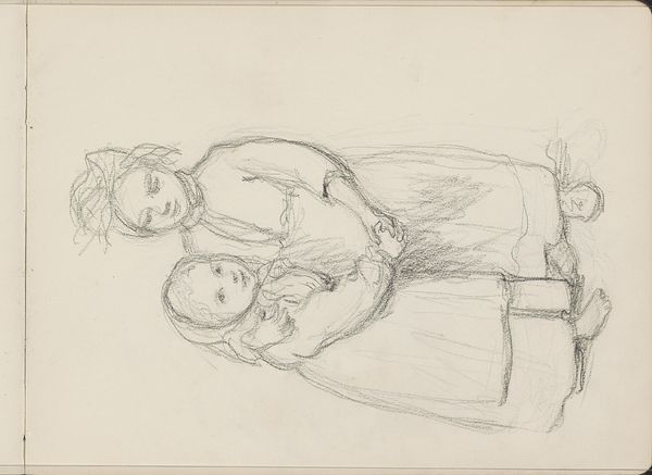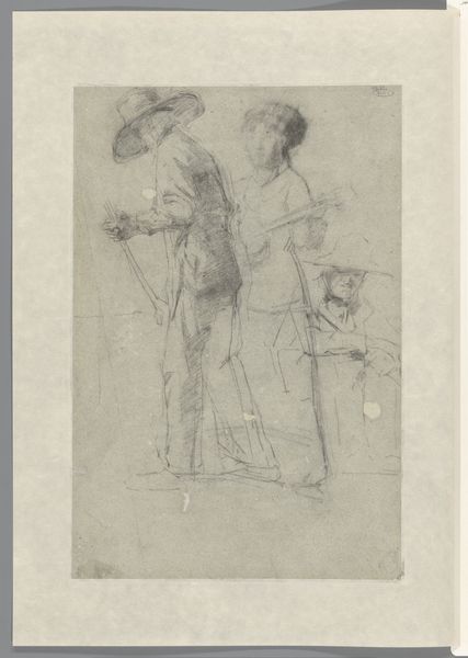 Curator: Standing before us is "Doppelbildnis der Geschwister Philipp und Sophie Hoff," a pencil drawing created in 1853 by Albrecht Brauer. It's currently housed right here at the Städel Museum. Editor: My first impression is one of hushed anticipation. The delicate lines create a scene that feels both intimate and slightly melancholic. It almost looks like an apparition, faded from memory. Curator: I agree. There is a subtlety in the application of pencil to paper; observe how Brauer uses hatching to create the illusion of form. It’s almost minimalist, but also exquisitely rendered. The composition itself is very structured. Editor: For me, the image resonates with a profound sense of German Romanticism, which, naturally, prioritizes emotional experience. I note the instruments depicted--the violin and music stand--point toward shared creative pursuits and the symbolism of siblings who play and live together. The fact the sister looks outward while the brother focuses solely on the violin may say something about expected societal roles for men and women at the time. Curator: An astute reading. But let's look at how light and shadow play across their faces, directing our gaze. Consider, too, how Brauer has subtly articulated the textures of their clothing; even in simple pencil strokes we get a sense of the period. Note especially how their forms are rendered, in a formal structure typical of 19th-century portraits, with the subjects posed but interacting closely with one another. Editor: I can't help but also think of this pairing as being a kind of idealized sibling relationship from that period—the sister seems to support her brother’s music making, an activity often considered highly desirable, sophisticated and spiritually rich in German aristocratic culture. We cannot miss the symbolic weight carried by musical instruments in conveying culture and personal identity. Curator: I hadn't considered it that way but your suggestion of “idealized sibling relationship” certainly brings to light Brauer’s composition and intention for the piece. A fascinating symbolist approach! Editor: It's always amazing how a close analysis of visual elements can unveil a deeper appreciation. Thanks for your formalist insights. Curator: Indeed, recognizing forms can enhance our emotional appreciation. Thanks, too, for elucidating that era with social symbolism!