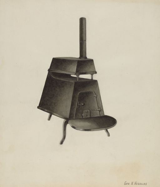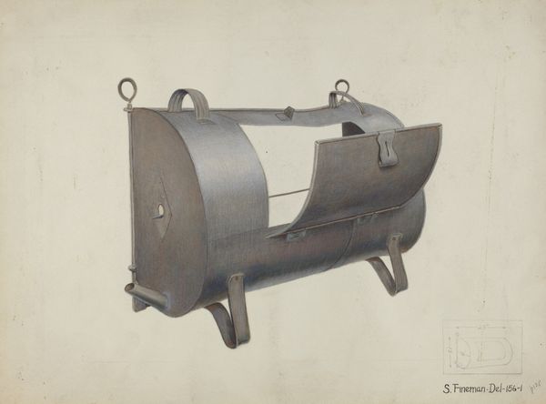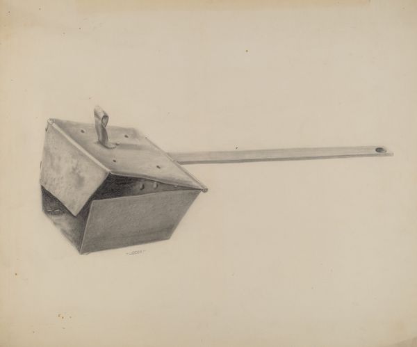 Editor: This drawing is called "Coal Scuttle," made around 1938 by Mildred Ford, and it looks like it's primarily graphite on paper. It feels almost like an industrial still life – so utilitarian, yet there’s a definite elegance in the rendering. What catches your eye in this image? Curator: The "Coal Scuttle" transcends mere representation. It holds, doesn’t it, layers of meaning beyond its functional purpose? The coal scuttle itself—an object of the domestic sphere—speaks of warmth, hearth, and perhaps labor, all tied to a specific moment in time, the late 1930s. It echoes of the Great Depression. The very act of depicting it, carefully and with attention to light and shadow, elevates it. Editor: Elevates it how? Curator: Consider the scuttle. Is it not a vessel, a container? Throughout art history, vessels are associated with femininity, the womb, but also ideas of plenty, nurture, and the secret hidden life within the home. And the use of graphite… Doesn't its monochrome suggest austerity, the practicalities of the working class experience? Is Ford possibly commenting on her socio-economic conditions? Editor: That's a completely different perspective than what I initially had. I was mostly thinking about form and light, not its symbolic value! Curator: Don't you think the act of observation itself has symbolic weight? The choice to represent this humble object implies an engagement with everyday life, dignifying what is often overlooked. And that, in itself, is quite powerful, right? What's your feeling now? Editor: I hadn't thought of it as making something so ordinary almost heroic through observation, but now I do see it. It’s a deeper comment on that era than I initially realized. Curator: Indeed. Everyday objects possess a quiet potency when we examine them through the lens of history, memory, and material culture. I also feel connected through my family history with this art object!