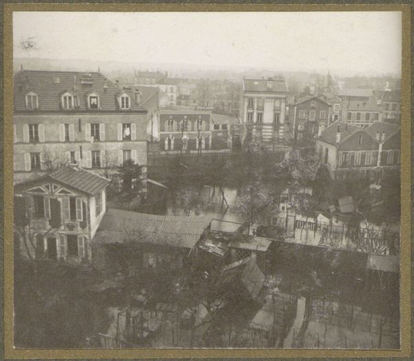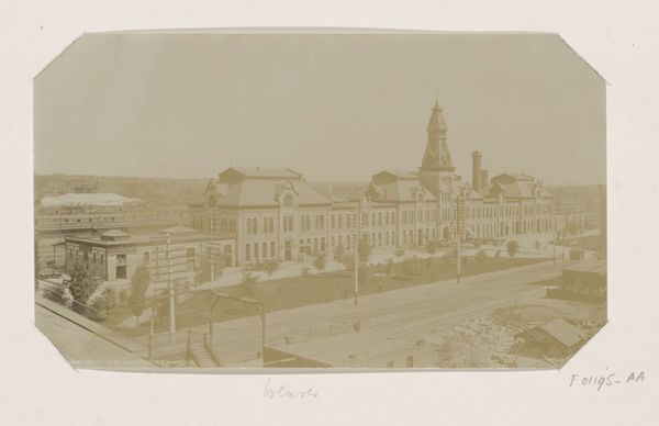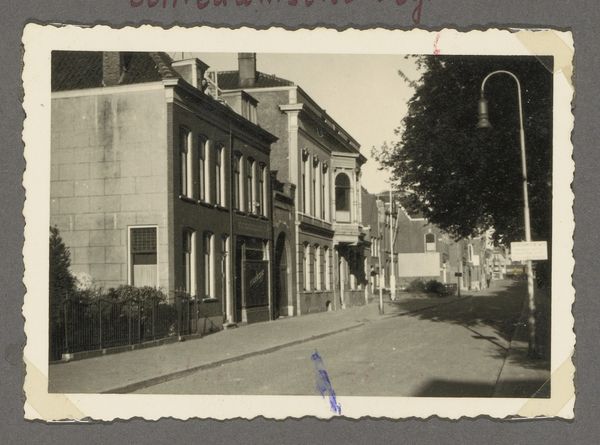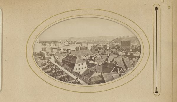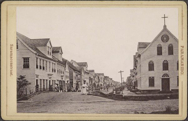 Editor: This gelatin-silver print, "Gezicht op Zandvoort," was taken by A. Bakels Sr. sometime between 1890 and 1900. It has a quiet stillness to it, even though it depicts a whole town. What sort of stories do you think this town holds? Curator: Ah, yes, a compelling document of a bygone era. The cityscape itself, notice how it’s dominated by the church spire. Do you see how that single vertical element punctuates the horizontal spread of houses? It acts as a potent symbol, not just of faith but of the community’s core values at the time, maybe even acting as a moral compass overlooking the lives and behaviours of the town's citizens. Editor: That's a great observation. The spire's certainly prominent. But it also feels a bit distant from those closer buildings. Curator: Precisely. Consider the visual weight—the photographer, likely consciously, chose a vantage point. The architecture in the foreground—the precise geometry of windows, doors—draws our attention, while the spire, almost ghost-like, seems part of the atmosphere. Do you agree that such compositions play with memory, of both presence and distance, the earthly and the divine? It presents questions of commerce, dwelling, spirituality. Editor: It certainly gives a sense of history unfolding. The architecture is more immediate, the church representing the old values in the distance. What stays with you most from the image? Curator: How everyday moments like this photograph become a collective cultural artifact, a memory we can all tap into despite not living in Zandvoort back then. To ask, and attempt to address, What stories and feelings can one black and white image inspire? What meaning, feeling or emotion? It reminds me that a photograph is more than what’s just in the image. Editor: I agree completely. I will definitely keep that in mind from now on.
