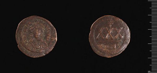 Editor: Here we have a coin of Justinian I, weighing in at just over 15 grams. I'm struck by the contrast between the detailed portrait and the somewhat crude lettering on the reverse. How do you interpret this contrast? Curator: It's a fascinating juxtaposition, isn't it? The portrait, striving for that imperial gravitas, versus the coin's functional purpose. It makes me wonder, what did the average person, clutching this coin, think about the man whose face it bore? A god? A tyrant? Or just a name connected to their daily bread? Editor: That's a very interesting perspective. Thank you. Curator: My pleasure. It's a humbling reminder that even the grandest symbols eventually end up in the hands of ordinary people, taking on new meanings with each exchange.