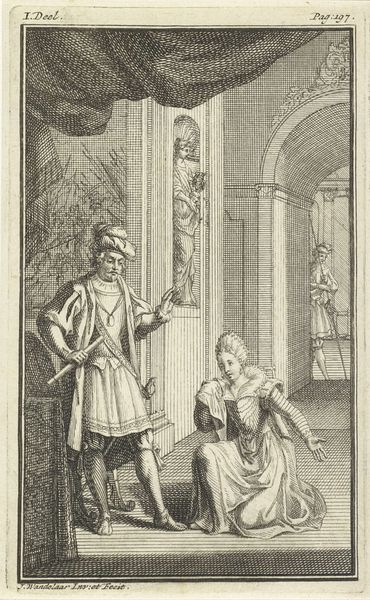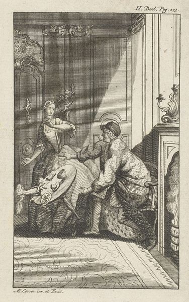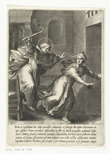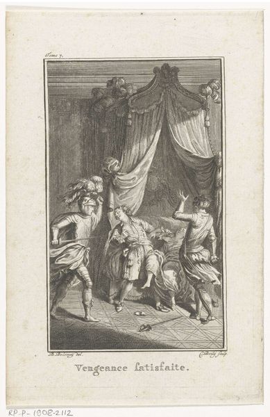 Editor: Here we have Jan Wandelaar's engraving, "Aanranding," created around 1722 or 1723. The scene feels quite chaotic; there’s definitely a sense of urgency and violation. I’m particularly struck by how the composition directs my eye, forcing me to witness a moment of great distress. What historical context illuminates this intense image? Curator: That's a keen observation. The title, "Aanranding", translates to "Assault," so we are definitely looking at a scene depicting some form of violence. Seventeenth and eighteenth-century art, especially prints, served an important social function. How do you think a piece like this would circulate and what purposes might it serve? Editor: Considering the history, maybe this image was used as social commentary? Perhaps highlighting power dynamics, or the vulnerability of women in certain historical periods? It feels like there’s more than just a narrative being presented; there's a definite point of view implied. Curator: Precisely. Prints allowed for wider dissemination of narratives, shaping public opinion. This wasn't merely a reflection of reality but also an active participation in defining societal values and, crucially, what constitutes an acceptable representation of violence and power. Consider the viewer – the imagined public looking at this in their homes or shared spaces. What are they meant to take away from this ‘lesson’? Editor: That's a compelling thought. It’s almost as if Wandelaar is inviting us to confront the unsettling reality of power, forcing us to consider our own roles as viewers and perhaps, as participants in the society that allows such events to occur, and to circulate so freely. It’s quite a responsibility when you put it like that. Curator: And that’s the lasting power of such pieces, to remind us that art isn't created in a vacuum; it mirrors, critiques, and shapes our collective consciousness. I think I need to consider more about how imagery of violence circulates today!