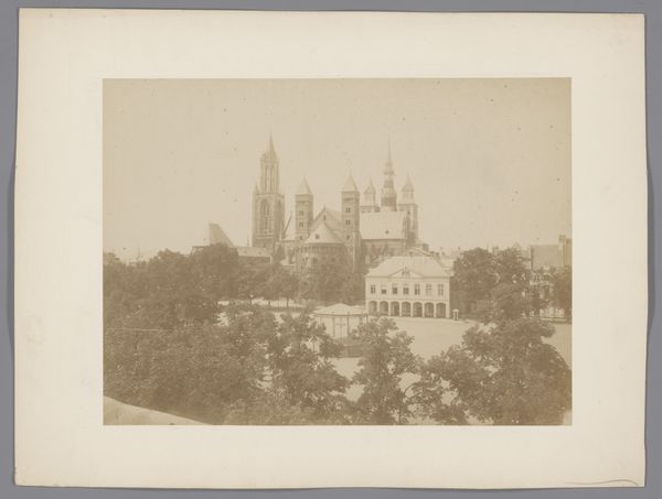 This sepia photograph captures the Vrijthof square in Maastricht, featuring the Sint-Janskerk and Sint-Servaasbasiliek. It was made by an anonymous photographer. The image invites us to consider the role of photography in shaping perceptions of urban space and cultural heritage. The photograph's composition, emphasizing the imposing architecture of the churches, speaks to the historical significance of religious institutions in shaping the social and cultural life of Maastricht. Consider that Maastricht is a city with a rich history of religious and political significance. The photograph may have been commissioned by the city to promote tourism and highlight Maastricht's cultural heritage. To understand this image fully, we might consult historical archives, urban planning documents, and religious studies. Only through a deep dive into such contextual information can we understand the complex interplay between art, power, and social life.