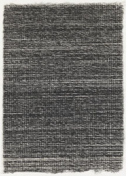 Editor: This is Anni Albers' "Dividing Curtain for Harvard Graduate Center Double Bedroom." I am struck by the interplay between the vertical lines. How would you describe the work's formal qualities? Curator: Indeed, the artwork's formal properties are quite compelling. Note the strict adherence to verticality, reinforced by a subtle variation in the weave. This reinforces both dimensionality and depth. The texture itself becomes a vital element. Editor: So, the material and its structure are key to the work's aesthetic impact? Curator: Precisely. Albers manipulates the weave to create visual interest. The interplay of light and shadow across the woven surface lends a subtle dynamism to the composition. The work is more than its function. Editor: I see how the textile becomes an exercise in form and structure. Thanks! Curator: Yes, exploring the intersection of material, structure, and visual effect is key. Thank you for your insightful observations.