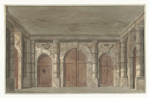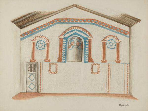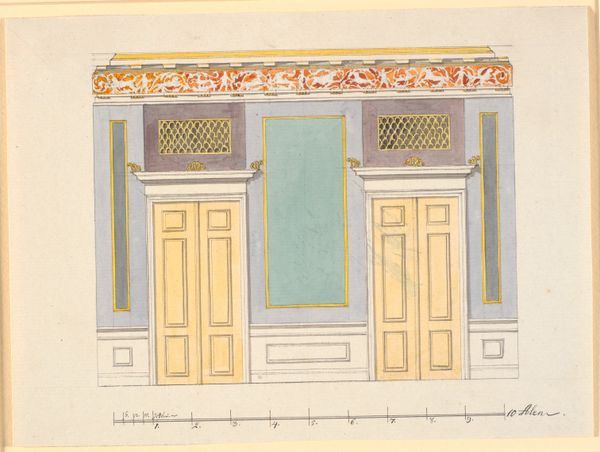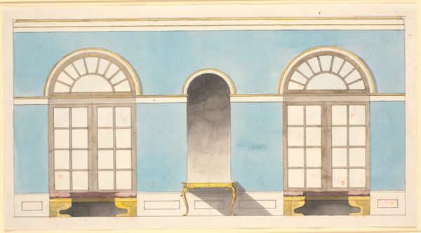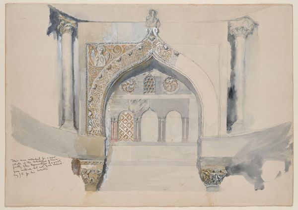 Curator: What strikes me first about this piece, entitled "Palace Interior," dating roughly between 1880 and 1900 and currently residing here at the Metropolitan Museum of Art, is the interplay of presence and absence. We are looking at a watercolor on paper. How do you see it? Editor: I'm immediately caught by this pervasive golden haze! Like walking into a memory, softened and sun-soaked. But a somewhat incomplete one at that... Is it just me, or does the artist present this crowded palace interior, filled with numerous figures, in very sketchy terms? The yellow tent draping creates a sensation like a gilded cage! Curator: It's astute to notice the artist's hand in that tenting effect. You might be touching on several layers of intent and representation, as that stylistic choice appears deliberately designed. The incomplete and suggestive drawing certainly feels meaningful in itself. Are the occupants ghost-like within the image, maybe representing cultural or family lineage, perhaps hinting at traditions observed during the era, all captured through art. Editor: Lineage, definitely! This feels so deliberately staged. The details in the windows above—those complex geometric patterns feel like little keys unlocking hidden stories. Those heavy drapes certainly create separation between viewers and the performance space depicted on the floor below. In this manner, the painter has created a multi-level tableau that emphasizes cultural layers between people within social structures. How brilliant to weave those things together! Curator: Yes, those lattice patterns act as important cultural signals—a visual language denoting power, prestige, and, perhaps, confinement too. This realism, combined with its delicate miniature execution, underscores how private lives became spectacles viewed by unseen audiences. Also consider, how, at its very heart, portraiture embodies the human capacity to create memory in artistic representation, preserving what the creator decides to record for those to come later. Editor: You're right—memory feels crucial. It is akin to holding fragments of the past, precious and fragile. The yellow hue almost gives a photographic feel, reminiscent of sepia tones found on ageing photographs, which allows our minds to place it as not something present day. It definitely captures fleeting moments—glimpses into another world that has all but been lost. It certainly resonates. I feel drawn into a hushed world of rituals witnessed and recorded. Curator: Exactly, and its current placement ensures it stays forever. So much of culture is wrapped up with the visual, the ability to pass from one generation to another the symbolism or artistic intention behind each artistic composition. And there you have it. Editor: An era re-envisioned! Always remember our place and legacy!