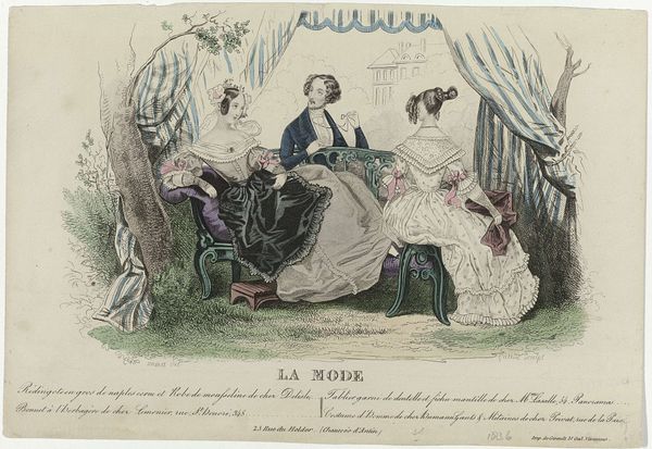 This fashion plate, published in France in 1839, displays archetypes of bourgeois fashion. Here, the attire is not merely clothing; it is a symbolic language, a form of social expression. The straw hats adorning the women, for instance, were more than mere headwear; they were emblems of pastoral leisure adapted for urban display. Straw, linked to agrarian simplicity, becomes a marker of cultivated taste when perched atop the heads of fashionable ladies. The gentleman’s top hat and cane, similarly, speak volumes. The cane, a vestige of the shepherd’s crook, has been transformed into an instrument of urban navigation, a scepter of the city dweller. This echoes motifs that stretch back through time, from royal scepters to the staffs of ancient priests. We see the psychological phenomenon of adaptation, where objects evolve, carrying ancestral echoes into new contexts. These echoes resonate subconsciously, influencing how we perceive status and authority. This plate is not just about fashion; it's about how we dress ourselves in layers of cultural meaning.