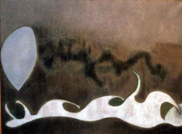 Editor: Here we have Remedios Varo's painting, "The Desire," made with acrylic paint. I'm immediately struck by the fantastical, almost dreamlike quality of the landscape and how solid, geometric landforms seem to be rendered in melting candle wax. What draws your attention to this work? Curator: As a materialist, I'm captivated by Varo's specific manipulation of paint to create this illusion. The red hill-forms contrast against the creamy wax structures, drawing my eye to the production of texture, where rough material contrasts with fluid artifice. Considering her surrealist style, it could reflect on industrialized desire or fabricated emotion, using a surreal, otherworldly industrial production process. What role do you think the candle wax imagery plays in reflecting social norms? Editor: I hadn't considered the implied industrial element! So, the 'desire' in the title might be referring to something manufactured or processed, and less about a personal feeling. The plants growing next to the fire also complicate my understanding -- are they natural or artificial? Curator: Exactly. The contrast between organic and manufactured raises critical questions. Were these acrylic paints readily available or expensive to acquire? These small details provide crucial insights into her studio and socio-economic context. Consider also the repetitive pyramidal structures; this might mirror repetitive labor practices within an industrial context. How does that reading resonate with your perspective on Surrealism and desire? Editor: That connection makes so much sense. It highlights the commodification of even intangible things like dreams and yearnings. I initially interpreted this as something deeply personal but looking at the materiality shifts the whole perspective. Curator: Right, examining material production unveils the intricate layers within what we might initially perceive as fantastical. It reminds us that art, like any other commodity, exists within networks of labor and consumption. Editor: That really makes me think differently about not just this piece but about how we approach understanding art in general. Thank you!