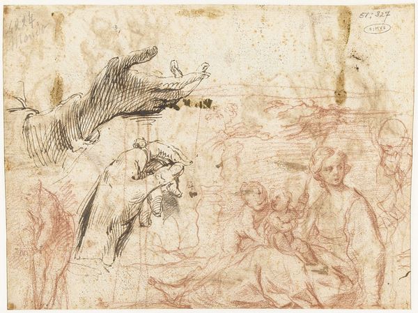 Parmigianino made this drawing of Saint John the Baptist in the wilderness using pen and brown ink on paper. The quick, sketch-like quality of the drawing is readily apparent in Parmigianino’s choice of materials, as well as in the visible lines and strokes, allowing the viewer to witness the artist's hand at work. The artist rapidly rendered dynamic and fluid lines, resulting in an ethereal quality. The layering and hatching of the lines show Parmigianino’s commitment to material practice to render form and texture in ink on paper. The translucence of the ink and paper creates a sense of lightness and movement, complementing the religious figure of Saint John the Baptist. Parmigianino’s conscious choices of these basic materials, together with the artistic techniques employed, reflect the cultural values placed on draftsmanship as part of the labor of producing art.