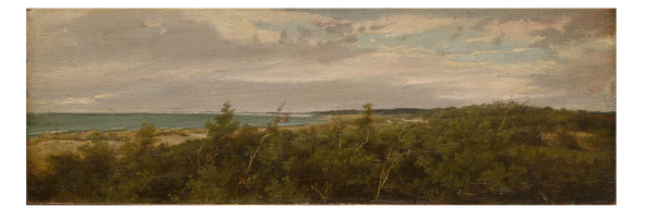Curator: Here we have Carl Rottmann’s "Landscape," created sometime between 1830 and 1850. The subdued palette of watercolours, oils, perhaps done *en plein air*, immediately conveys a sense of vastness, wouldn’t you agree? Editor: Yes, it's mostly horizontal. My initial reaction is a peaceful melancholy, a real feeling of the sublime in that expansive sky meeting such a muted earth. Curator: Indeed. Consider, though, Rottmann's historical context. The rise of Romanticism saw artists turning away from industrialization towards an idealized view of nature. These works reflect not just a literal landscape, but a cultural yearning. Who did the consumers consume in that epoch? Editor: That's interesting. I am intrigued by how Rottmann organizes the formal elements to achieve that effect. Notice the stratification: earth, band of trees, the gradient in the sky. Each zone defined by color. It is through this careful arrangement, the interplay of muted tones, that the emotional weight is carried. Curator: Agreed, but let’s consider Rottmann's method and materials further. The visible brushstrokes are evidence of quick, outdoor work – he wanted to truly grasp and translate what nature presented. These landscape painters contributed substantially to shifting art's focus from grand studios to direct interaction with our natural surroundings. Editor: Definitely! I notice, particularly in the sky, the very subtle transitions in the color value create depth and simulate the play of light that give that sublime mood and ethereal beauty. The structural element enhances the symbolic import. Curator: Yes, it brings Romantic ideals to a material plane, showing an early concern for the fleeting aspects of an environment constantly affected by labor, society and its tools and processes. Editor: It's a potent reminder of nature's power through his careful considerations in structure. It’s wonderful how the intrinsic elements coalesce and give it the mood. Curator: Indeed. And perhaps through recognizing those artistic strategies, but the physical production in situ as well, we find even greater value within "Landscape". Editor: A final moment to consider how it all blends together: formal execution with emotion.
