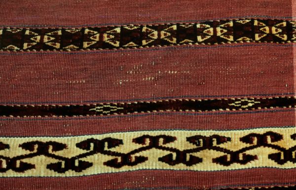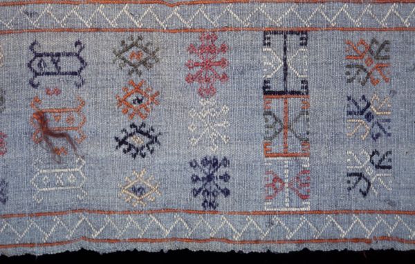 This mule saddle cover was made by Glaoua, with undyed and dyed wool threads. The design shows a sophisticated understanding of textile structure. To create it, the weaver would have used a loom and a supplementary weft to create the pile. The inherent qualities of the wool, its warmth, durability, and workability, are all on display here. The weaver’s skilled techniques, combined with the texture and the weight of the material, all contribute to the saddle cover’s physical presence. The rich colors are not just decorative. They reflect the labor and resources required to dye the wool. The saddle cover, in its entirety, speaks to the rich cultural heritage and the significant amount of work involved in its production, inviting us to see the artistry embedded in the everyday.