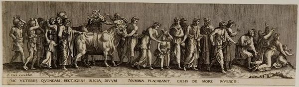 Curator: Pietro Santi Bartoli's "Saint Paul Reading the Scriptures" presents such an intriguing scene. The delicate lines almost hum with the intensity of the moment, don't you think? What strikes you about this composition? Editor: It feels like a snapshot of a very important moment. The figures seem captivated, but also a bit tense. What do you see in this work that I might be missing? Curator: Well, consider the era. Bartoli, working in the 17th century, uses these classical forms to depict a pivotal Christian narrative. The act of reading scripture wasn't just about knowledge; it was about power, interpretation, and shaping beliefs. Do you sense any of that tension now? Editor: Absolutely! It's like they're wrestling with the words themselves. I really appreciate your perspective on the historical context. Curator: It's all about seeing beyond the surface, isn't it? Each viewing reveals another layer. Editor: Agreed! Thanks for shedding light on this.