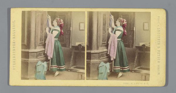 This photograph was made by Loescher & Petsch, and it captures a woman at a window, waving a handkerchief. The sepia tones lend it a dreamy quality, like looking back through time. The surface has a slightly textured feel, almost like you could run your fingers over the grain of the past. Look closely at the woman's dress, the way the fabric bunches and folds. You can almost feel the weight of it. The light is soft, creating a gentle contrast that makes the scene feel intimate. Notice how the handkerchief seems to float, a crisp white against the muted tones. It’s a simple gesture, waving goodbye, but it’s full of emotion, of longing and farewell. This image reminds me of the quiet moments in Edouard Vuillard’s paintings, a similar feeling of introspection and domestic life observed from a distance. Both seem to suggest that art isn’t about grand statements, but about finding beauty in the everyday.