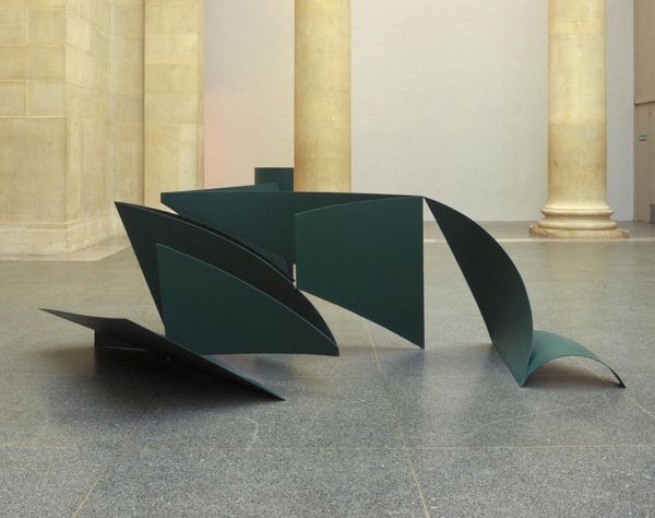 Anthony Caro's "Piece LXXXII" presents a striking interplay of shapes and colors, crafted with painted steel. The dominant visual experience is one of dynamic equilibrium, where earthy orange forms are juxtaposed against the clean white table, evoking a sense of controlled energy. Caro's mastery lies in his ability to use industrial materials to create works that challenge conventional notions of sculpture. The steel elements, arranged on and around the table, reject traditional sculpture's monolithic presence. The negative space becomes as important as the solid forms, inviting viewers to consider the relationship between mass and void. Caro's approach is deeply rooted in formalism. He explores the intrinsic qualities of his materials and how they interact within a three-dimensional space, creating a visual language that speaks to the essence of form. Each element functions not merely aesthetically but also as a part of a larger dialogue about space, perception, and the reinterpretation of artistic conventions.