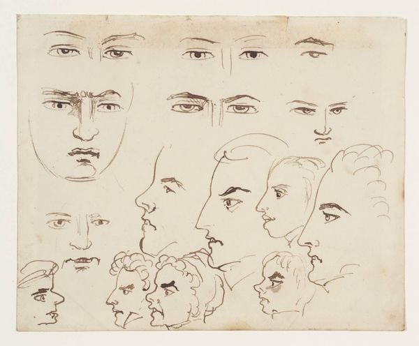 Editor: This is "Schematic Studies of a Head," by the British School, around the 18th century, housed at the Tate. It's a series of head drawings. What do you see in this piece, as a historian? Curator: These studies reflect the academic art training of the time. Art academies emphasized mastering anatomy and ideal forms. What does it say about the social status and roles of portraiture in that era? Editor: That's a good point! I hadn't thought about how academic training shaped artistic production. Curator: Precisely. The piece demonstrates the power structures embedded in artistic institutions. Think of the patronage systems. Editor: I'll definitely be thinking about the socio-political forces at play when looking at art from now on.