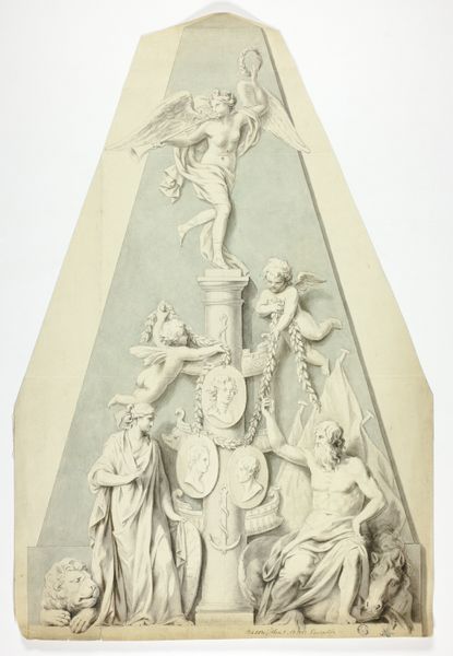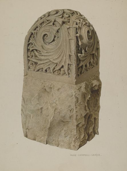 Curator: The carving presents Albrecht von Wertheim as depicted within the Bamberg Cathedral. It is believed to have been crafted sometime between 1900 and 1920, channeling medieval themes into the early twentieth century. Editor: My initial impression is dominated by the cascading drapery; it’s so heavily stylized. Notice how the vertical lines are offset by these repeated curves, creating both dynamism and an interesting textural complexity within the stone itself. Curator: Absolutely, and I think this formal emphasis serves to underscore the renewed interest in medieval aesthetics during the late 19th and early 20th centuries. The figure is carefully posed, presenting Albrecht not just as an individual, but as an exemplar of religious and political authority, aligning the church with regional powers. Editor: I’m also intrigued by the way the figure seems almost detached from its architectural niche, creating this interplay of foreground and background. It’s as though the artist sought to flatten and then rebuild depth, defying sculptural conventions. Curator: Yes, and in many ways that reflects the Cathedral’s overall historical function, acting as a repository for cultural memory, constantly reinventing itself as a vessel for evolving religious and political needs. Editor: Considering the emphasis on line and plane, what can you tell me about the political environment that allowed the artist such formal license? Did the patrons specifically solicit this style? Curator: Well, the re-engagement with historical styles was quite common in the period, but it frequently served to reinforce the political and religious status quo through an appeal to tradition. Here, the choice of Wertheim suggests an attempt to re-center regional power struggles within a broader historical narrative dominated by Bamberg's religious institutions. Editor: Ultimately, even through a photograph, the sheer monumentality and intricacy is rather effective at presenting both religious and temporal power, if not an interesting sculptural surface. Curator: Agreed. It is a potent reminder of how our present understanding of history is constantly shaped by these complex representations of the past.