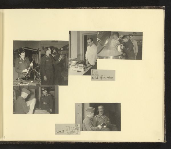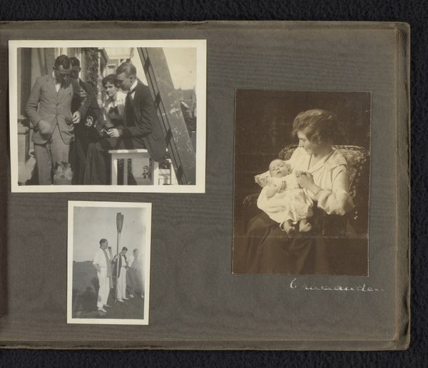 This series of photographs titled "Familie en vrienden", by P. Brandsma, presents a fragmented narrative through its composition and arrangement. Each photograph, with its distinct subject and setting, functions as a signifier within a larger semiotic structure. The placement of these images on the page, seemingly random, creates a visual language. It invites us to consider how meaning is constructed not only within each photograph but also through their juxtaposition. Consider the texture of the album page itself, its matte surface contrasting with the glossy prints. This tactile element underscores the personal, almost diaristic, nature of the work. The varying sizes and orientations of the photographs disrupt any sense of linear narrative, challenging our expectations of traditional storytelling. The structural arrangement here doesn't prescribe a fixed interpretation. Instead it encourages an open-ended engagement with memory, representation, and the very act of seeing.