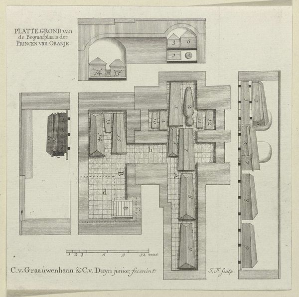 Caspar Jacobsz. Philips created this print of the floor plan of the burial vault of the House of Orange-Nassau using engraving techniques. The precision of the engraved lines gives the print its informative character. Philips’ labor-intensive process involved meticulously incising lines onto a metal plate, inking it, and then pressing it onto paper. The stark contrast of the black lines against the white paper emphasizes the architectural layout of the vault, the final resting place of the Dutch royal family. Engraving, unlike more gestural drawing methods, demands control and exactitude. This aligns with the desire to document and classify information characteristic of the Enlightenment. The print serves as a visual record, mapping out the space and its contents for posterity, giving the viewer an intimate look into the craftsmanship and history of the House of Orange-Nassau. By considering this floor plan, we begin to blur the lines between fine art, documentation, and craft.