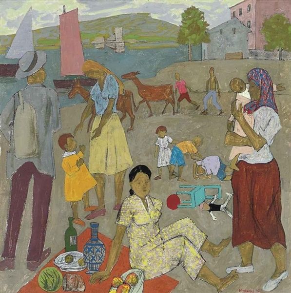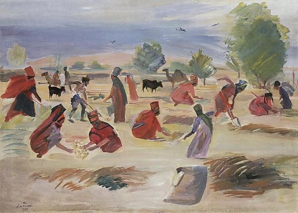 Martiros Sarian painted Turkmen Children in 1934 with oil on canvas. It depicts a slice of life from a Soviet republic on the border with Iran and Afghanistan. The painting is a rich source of information about cultural change and institutional influence. Sarian was an Armenian painter who received his formal training in Moscow. This makes his perspective both ‘insider’ and ‘outsider’ to the culture that he depicts. The scene is painted in muted tones, with strong horizontal lines and geometric forms. The image is composed of the children in the foreground, domestic animals in the middle ground and mud-brick buildings in the background. The painting reflects the Soviet policy of promoting national cultures while also integrating them into the larger Soviet project. The fact that Sarian made this painting and that it now hangs in a museum is a reflection of the institutions of art in the Soviet Union, which played a crucial role in shaping and promoting national identity. By researching the social and institutional context, we can gain a deeper understanding of the painting's meaning and significance.